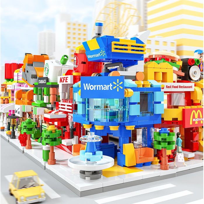 164 Pieces Mini Lego City Street View Blocks McDonald's House Model Children's Educational Toys
