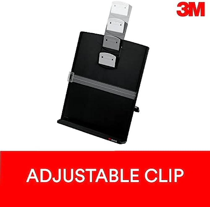 3M Desktop Document Holder Copy Holder, Adjustable Clip Holds Portrait and Landscape Documents for Easy Viewing, Bottom Ledge Has Lip to Keep up to 150 Sheets Securely in Place, Black (DH340MB)