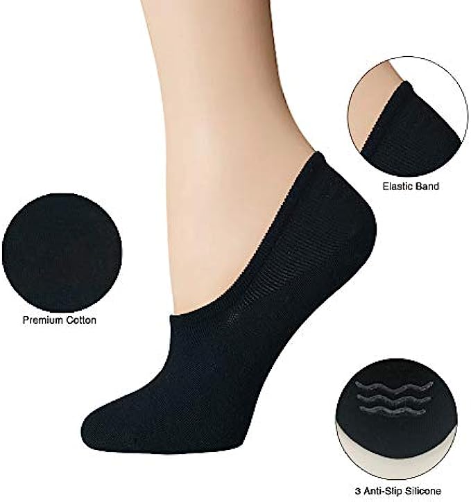 • One of the cool features comes with a non-slip silicone grip in the back to keep the socks on your heel, it doesn't slip off, so these ones stay on all day.