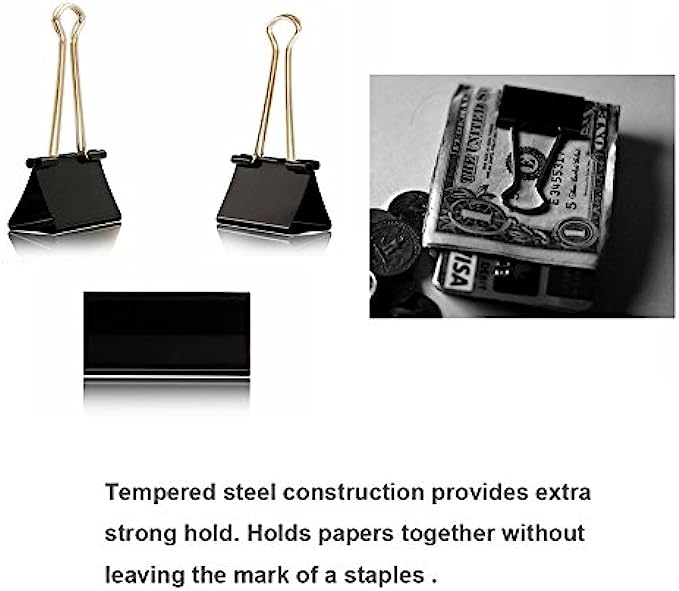 STORAGE - These binder clips are made of iron material, strong and durable, black and silver color. Packaged In A Reusable Plastic Container For Easy Storage