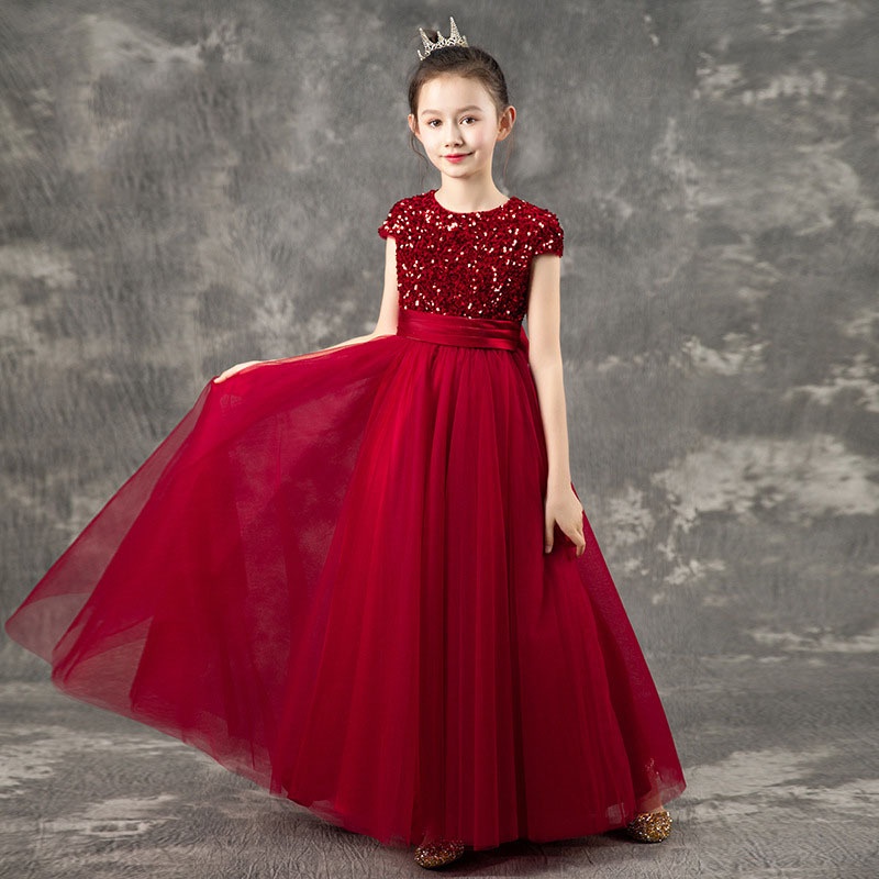 Children's Elegant Long dress girl ceremony dress Children Bridesmaid Dress Flower Girl Dresses First Communion Dresses for 5-14 years