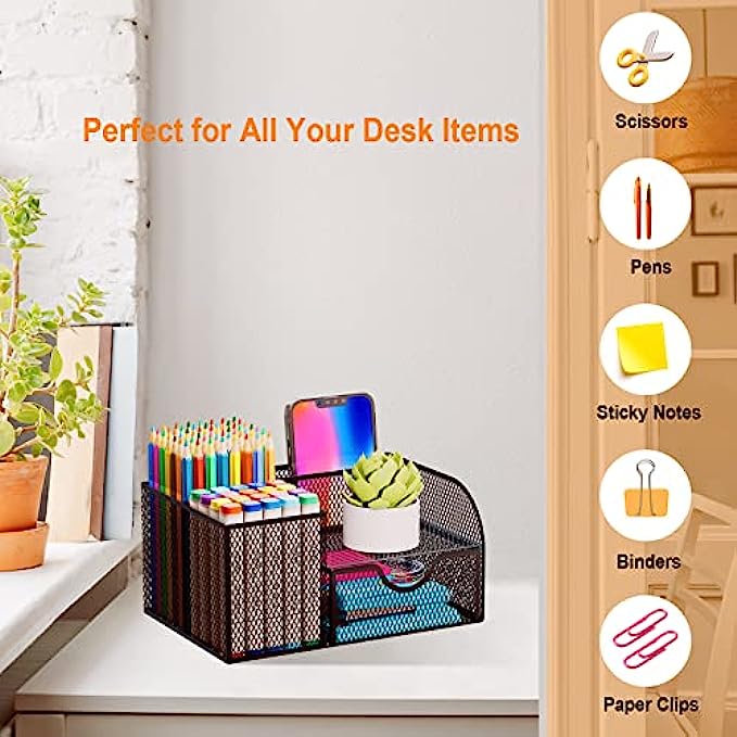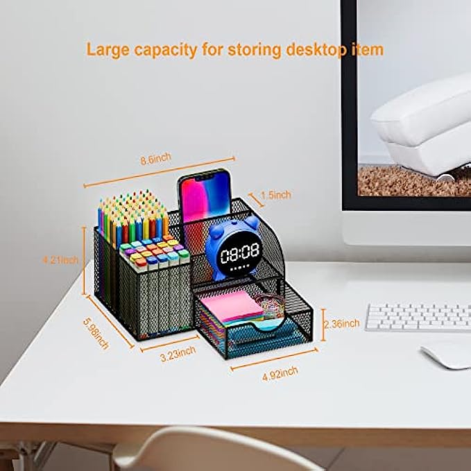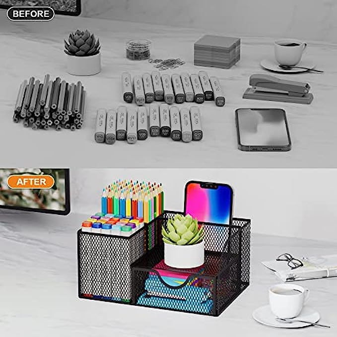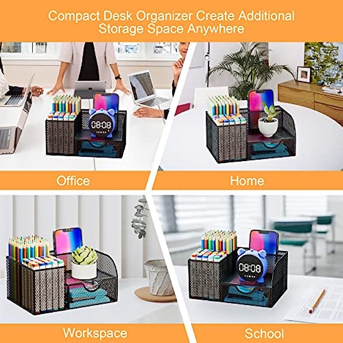 SAVE DESK SPACE: one suitable desk organzier can help to save desk space, it is useful to separate and organize all your stationeryas per usage, you can quickly locate important items when you need it