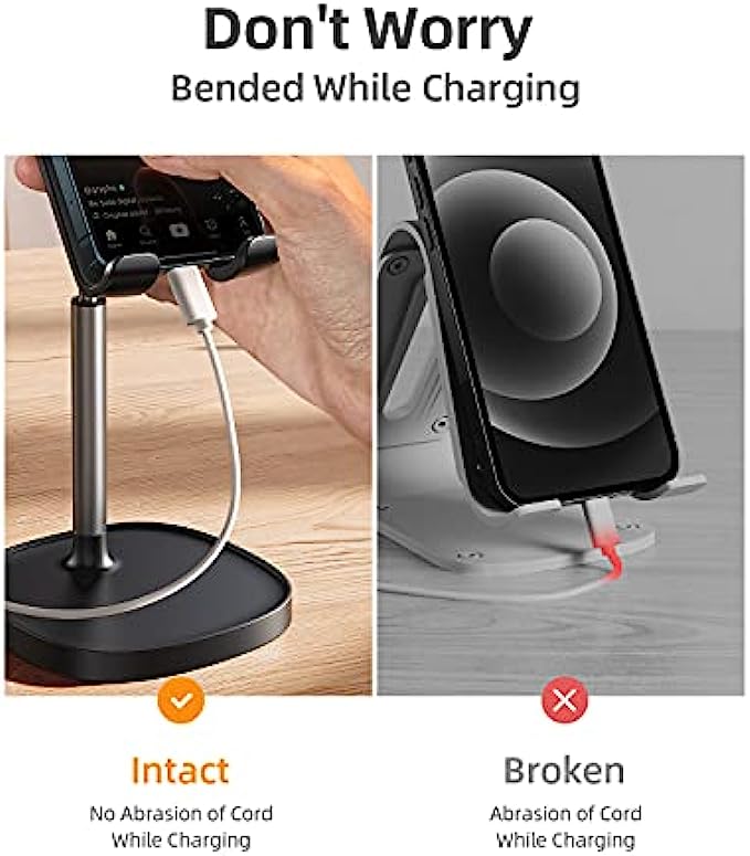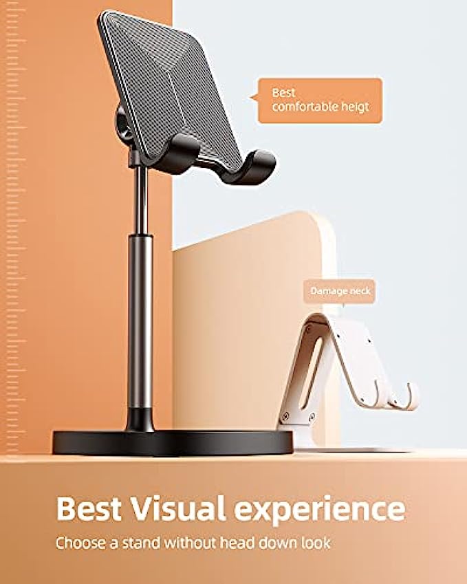 TALLER AND MORE PHOTOGENIC STAND, HELP TO CORRECT THE "TEXT NECK": This cell phone stand holder is in accordance with ergonomic design. Providing you comfortable viewing angle which helps to fix your posture and reduce neck & back strain. The height can be easily adjusted between 7.1in-8.5in(1.4in adjustable range), the angle is adjustable between 5°~85° USER-FRIENDLY DESIGN: [No bent & tangling & tip over worries] when using while charging. Due to bent cable, the low phone dock maybe fall over. LISEN stylish adjustable phone holder for desk has a reserved charging hole design, supports cable management, [No bent & tangling & tip over worries]. This phone pad will not cover the subtitle when you watch the video WEIGHTED ANTI-SLIP BASE: This cell phone stand for desk is equipped with a weighted base and an aluminum alloy rod. Therefore, this iPhone stand holder is stable enough to support all smartphones or small tablets, such as 2021 iPad Mini, iPhone 13 Pro/13 Mini/12/12 Pro/12 Pro Max/12 Mini/iPhone 11/11 Pro/Max/X/MAX/XR/8/8P, Samsung Galaxy S21, S20, Note 10/9/8/Plus, S10/S9/S8, Kindel, Switch, iPad Mini,iPad Air, etc.We recommend the most stable compatible device size is 4-10 inchs ANTI-SLIP DESIGN: The pad back and the bottom of this cell phone stand are fully covered by anti-skid silicone, which LISEN iPad stand holder can provide maximum protection for your device from any scratches and slides, grips friendly ❤️WE CARE ABOUT YOU❤️: If the product arrives broken, or get broken within 365 days, please directly contact LISEN for satisfied solution. Any other problem like could not tighten the screw, please also contact us. We sincerely care about every customer's shopping experience! (Product including: phone stand*1, screw*1, hexagon screwdriver*1, specification*1)