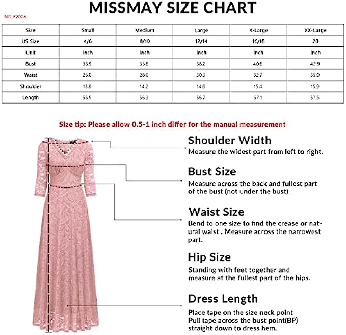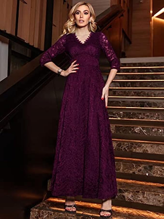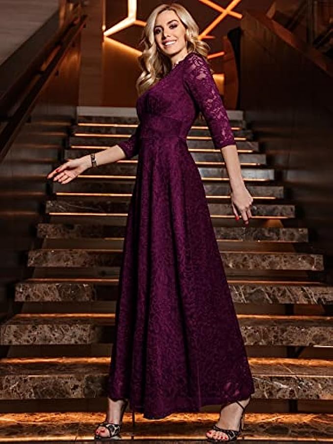MISSMAY Women's Formal Floral Lace 2/3 Sleeves Bridesmaid Party Maxi Dress