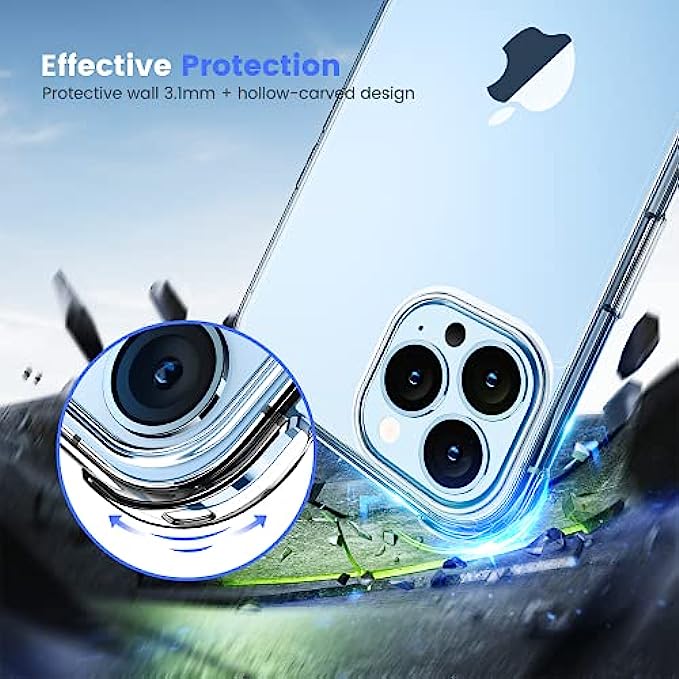 Only compatible with iPhone 13 Pro released in 2021. Protect your Camera lenses and screen : The lens protection lips raised 3.5mm on the back provides extra protection,effectively prevents the camera lenses and screen from breaking and scratching. Special design Cover for clear iPhone 13 Pro Phone case perfectly for easy access to all buttons, speakers and charger slot. The middle of the four corners is a unique hollow design, bumper thickness raise to 3.1mm,which can buffer the pressure and protect your phone from sudden dropping. Transparent and anti-yellow Cover : Clear case for iphone 13 pro Using high-definition tpu and pc material, which effectively resist stains and sweat, not easy to get greasy and yellow over time,perfectly shows the original color of your phone.