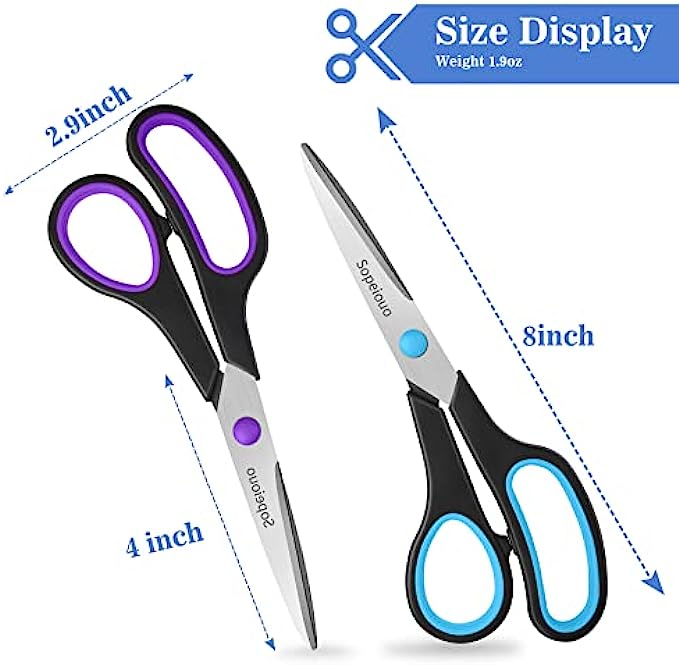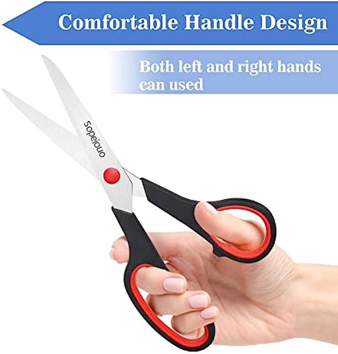 Comfortable and Safety Scissors --Excellent ABS handle wrapped with semi-soft rubber at inner circle, can be used left- or right-handed. Great as office scissors, school scissors, sewing scissors, sharp scissors, craft scissors, fabric scissors, household scissors, garden scissors, craft shears, left handed scissors, older kids scissors, classroom scissors, students scissors, teachers scissors, scissors bulk