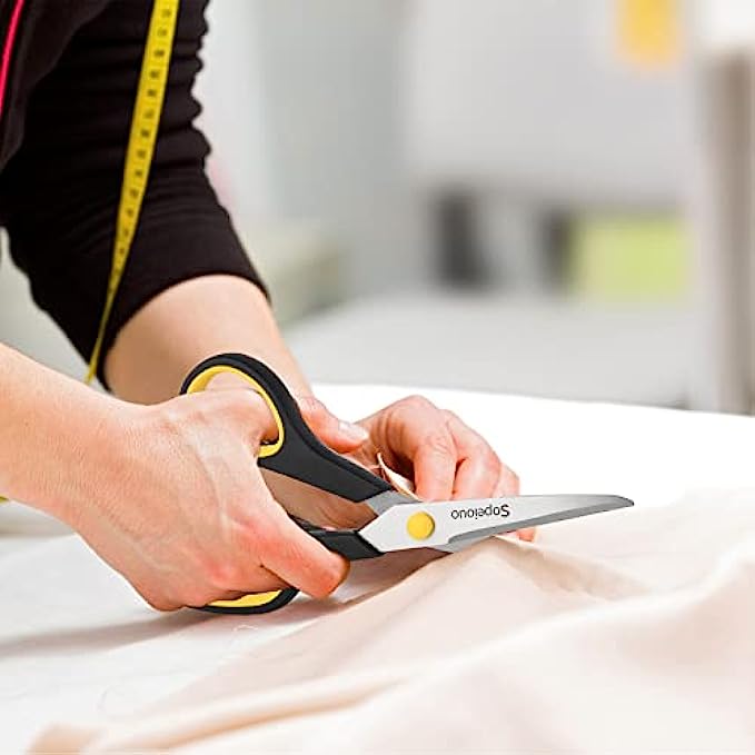 All Purpose Scissors -- Heavy duty scissors, very durable, great for most regular household tasks, such cutting through paper, thin cardboard, poster board, light ribbon, tape, photos, light fabric, card stock, medium plastic, foam, foil, burlap, canvas,Perfect for sewing, tailoring, quilting, dressmaking, cutting patterns, alterations, hand craft.