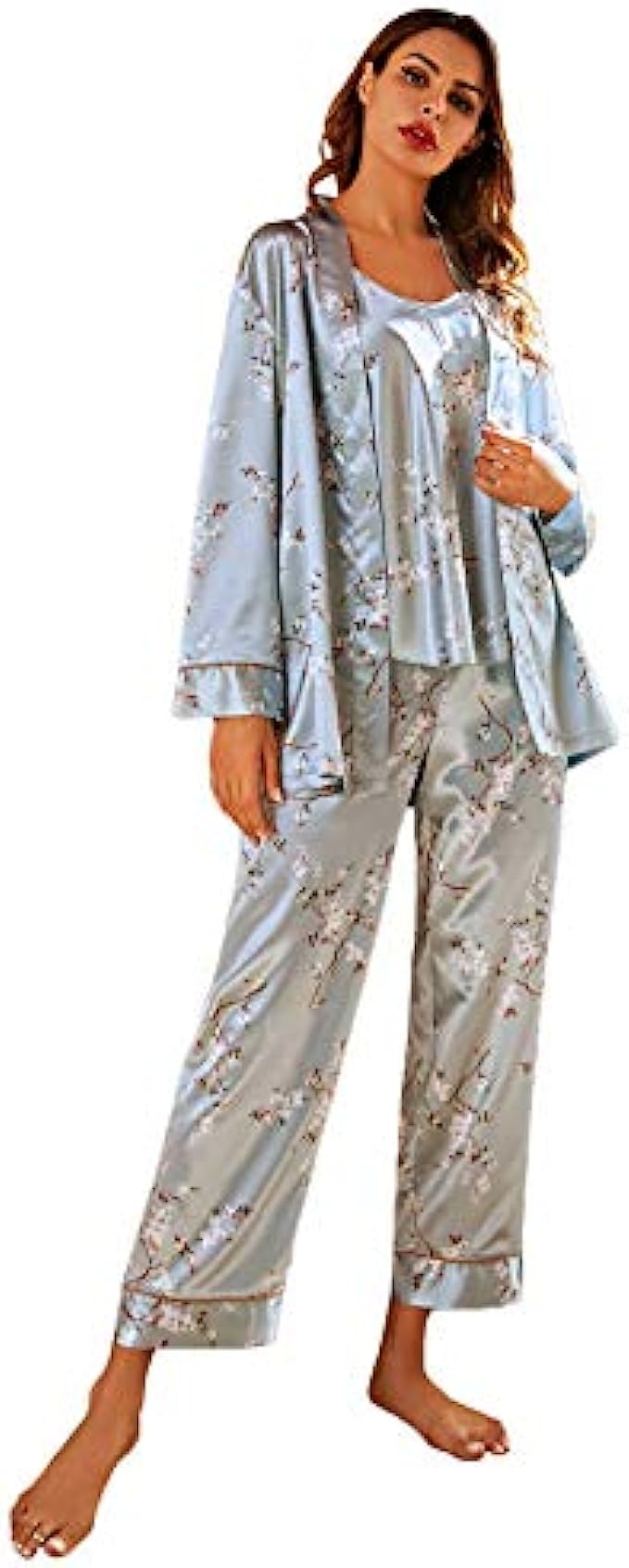 • The robe matching with long sleeve, belted tie front, this 4pcs pajama set meet all your needs, perfect dress for wearing at home, sleeping in, hotel, spa, etc