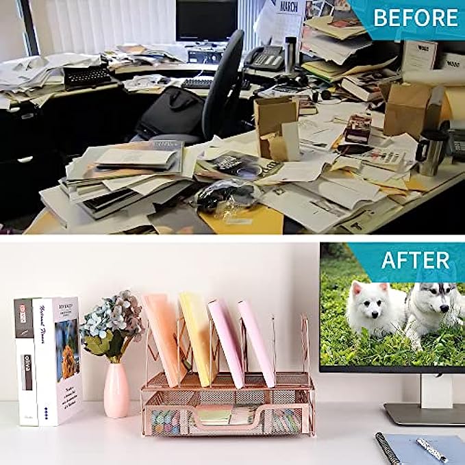▶POWERFUL DESK ORGANIZERS AND ACCESSORIES: The organizer has enough space to organize your letters, documents, reports, magazines, pen and other office accessories. The 5 vertical file rack sorters make it easier to get file. Great for school, office or home storage.
