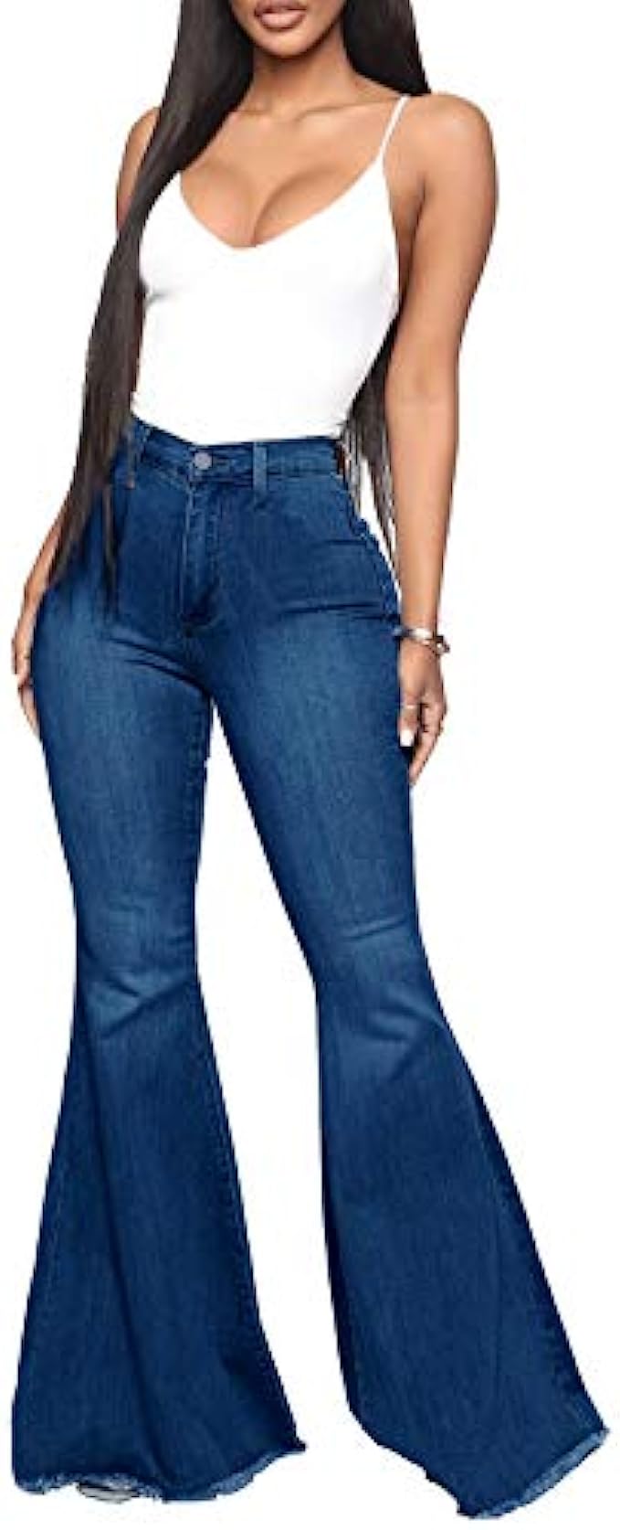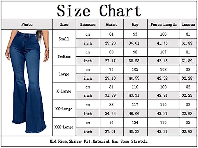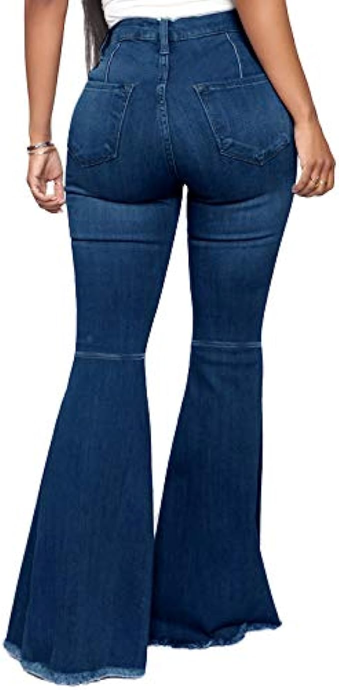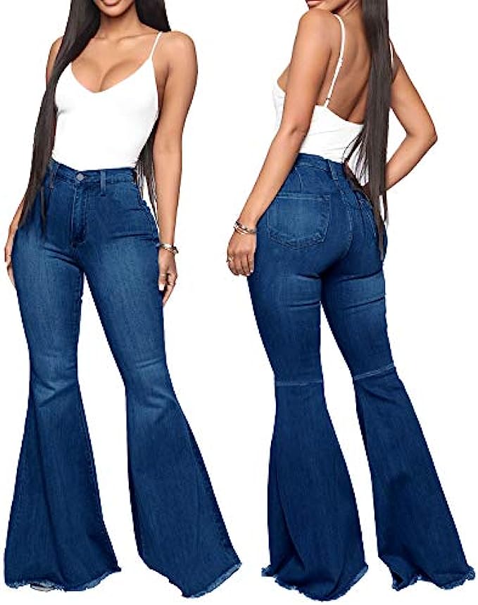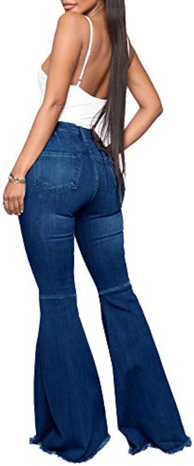 The Flare Bell Bottom Jeans Destroyed Denim Pants for Women are made of Polyester and Spandex,have some stretch and not thick ,classic style suit for all seasons all occasions by well matched. Imported Flare Bell Bottom Jeans Denim Pants for women,Ripped Destroyed Flare Denim Jeans for women,70s Outfits for Women. Perfect for modern fashion with a basic blouse, shirt, crop top, jacket, pullover sweater, sweatshirt,outwear coat and heels. Pull On closure Flare Bell Bottom Jeans Denim Pants for women,Ripped Destroyed Flare Denim Jeans for women,70s Outfits for Women. Details: Bell Bottom Jeans for women/Destroyed Flare Denim Jeans for women,zip fly and button closure,trendy ripped holes at the knee,mid rise with two pockets at back. PERFECT FOR ALL OCCASION: You can wear these jeans to work for that business casual day at work and have a seamless transition to happy hour with your friends at night.