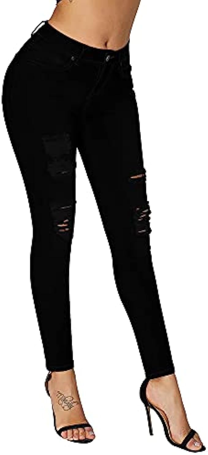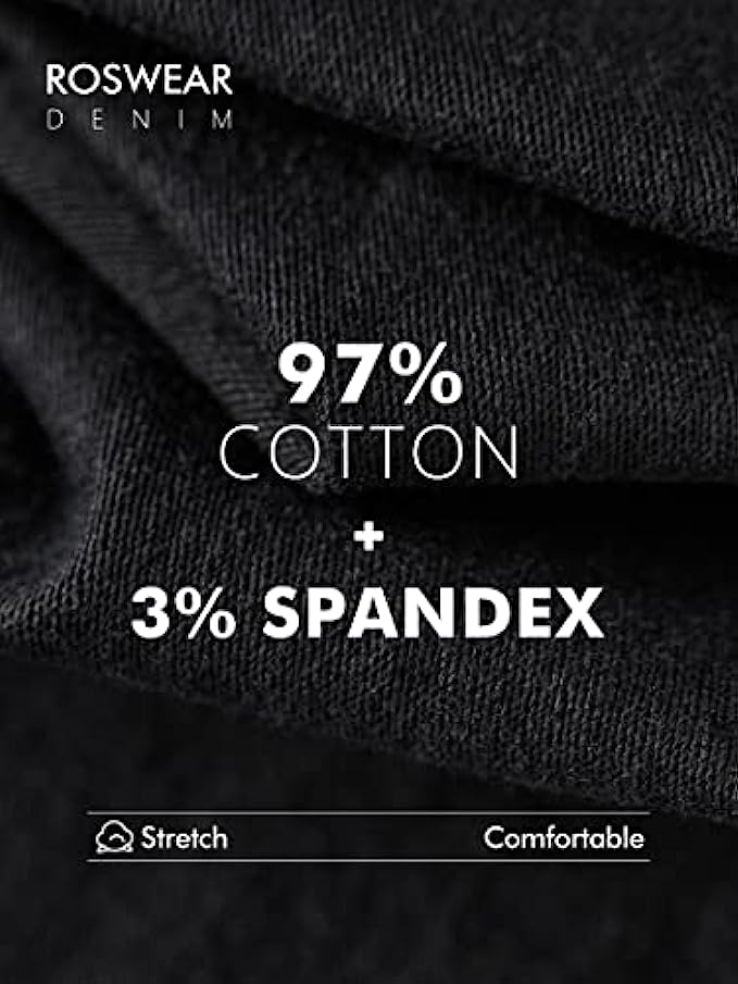 97% Cotton, 3% Spandex Imported Zipper closure Machine Wash Roswear ripped stretchy skinny ankle jeans with belt loops and five pockets, high-rise waist, distressed details. Close to the body are designed to perfectly show your beautiful leg silhouette and the shapes of your curves. Roswear carefully selects super elastic, soft lightweight and breathable fabrics, so that you will feel free in all positions when sitting or squatting.
